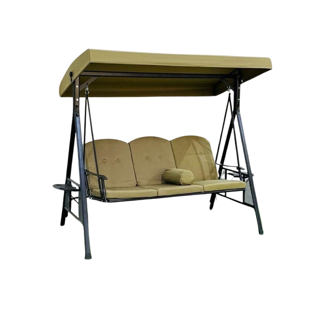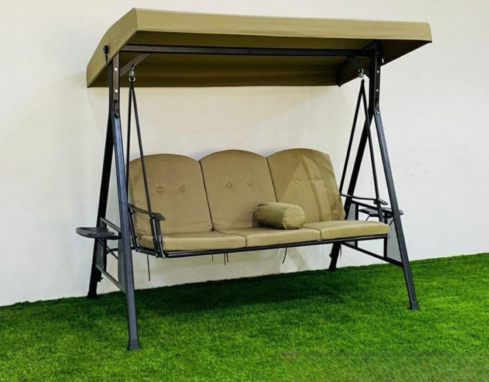كرسي مرجيحة مع مظلة شمسية 3 أشخاص مع تكاية في الوسط و حدايد قوية جداً